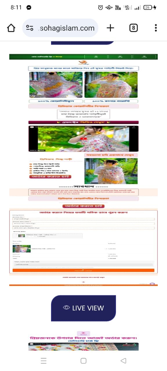 সাবধান বাজারে অন্য জায়গা থেকে কম দামে নকল সিল্ক শাড়ী নিয়ে প্রতারিত হবেন না। অরিজিনাল সেমি মুসলিম সিল্ক শাড়ী এরচেয়ে কমে দেয়া পসিবল না। তাই যদি কেউ অন্য জায়গায় কম দেখে এখানেও কমে নিতে চান, তিনি আমাদের থেকে দয়া করে অর্ডার করবেননা। কারণ আমরা নকল পন্য দিতে পারবোনা।